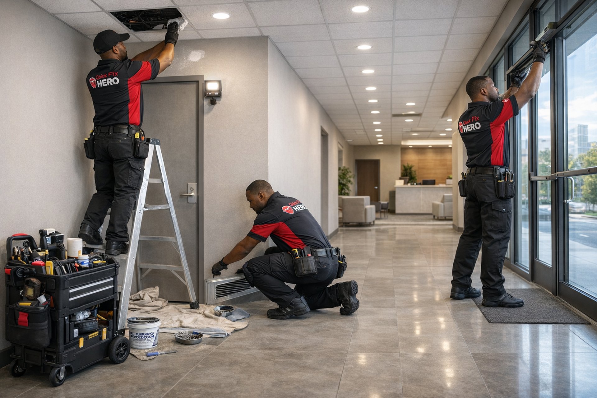 Need general building repairs for commercial properties in St. Louis or St. Charles, MO? The Quick Fix Hero handles doors, walls, ceilings, fixtures, and more. Fast, reliable handyman support for property managers and owners