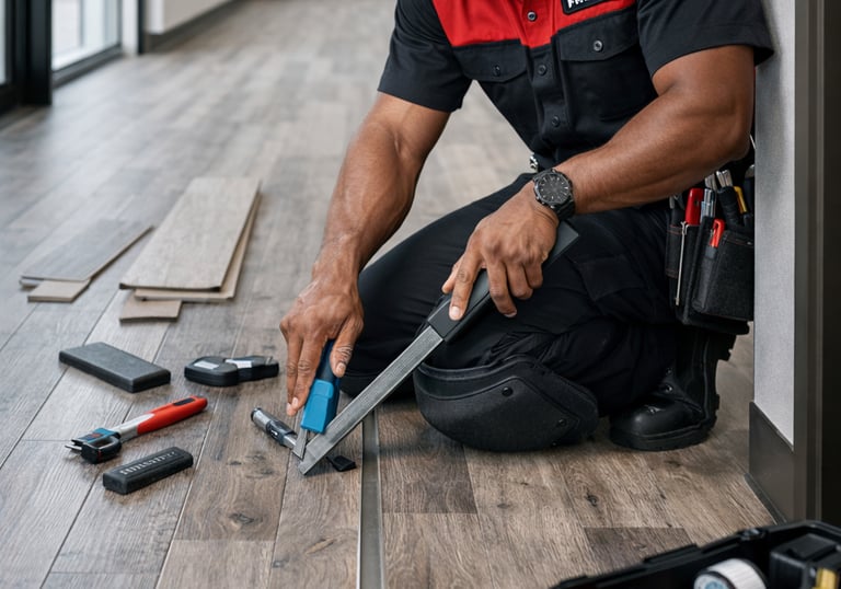 Address small damaged spots in flooring, re‑secure loose transitions, and handle minor vinyl or laminate repairs (not full carpet installation).